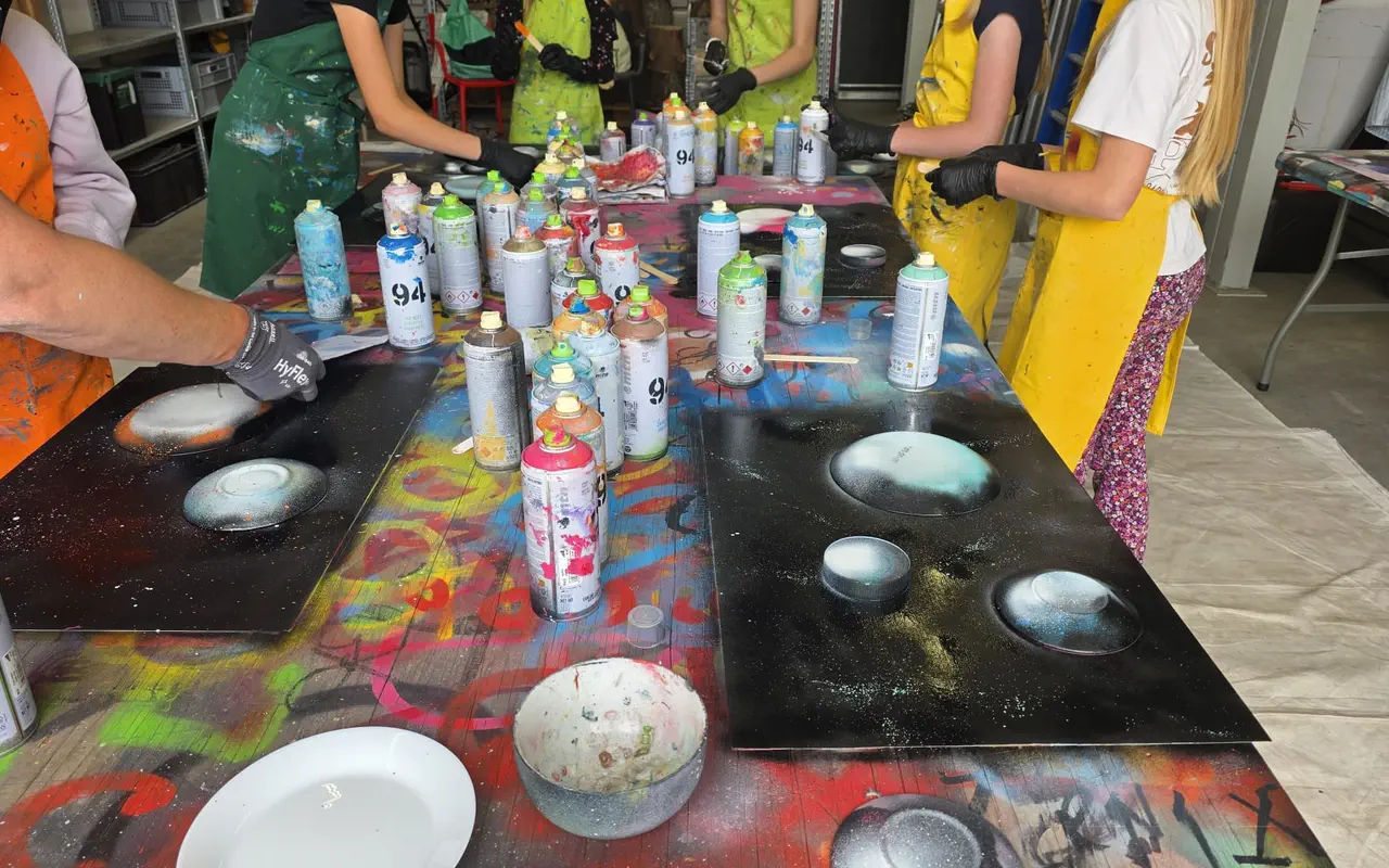 Met spuitbussen en stencils maak je een kunstwerk dat knalt van kleur!